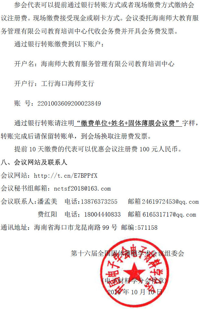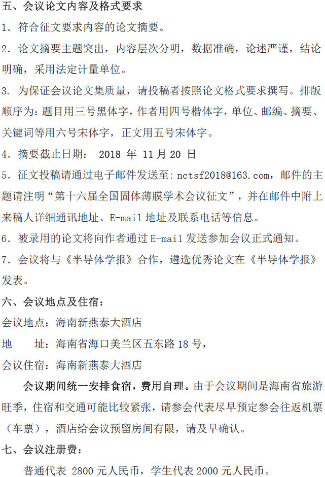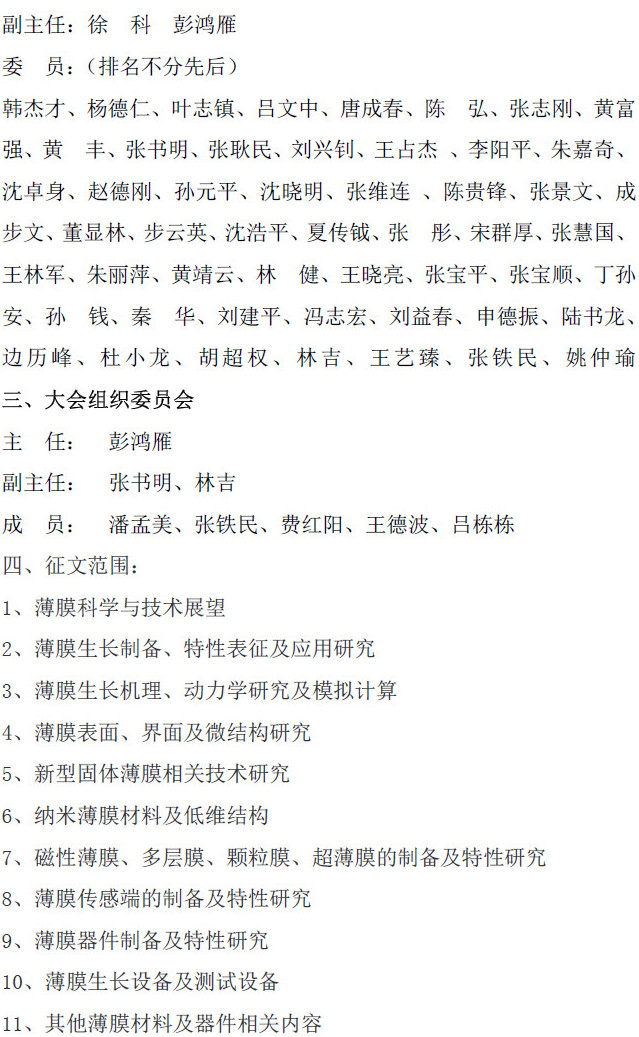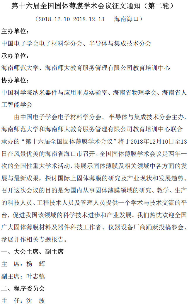 第十六届全国固体薄膜学术会议征文通知(第二轮)