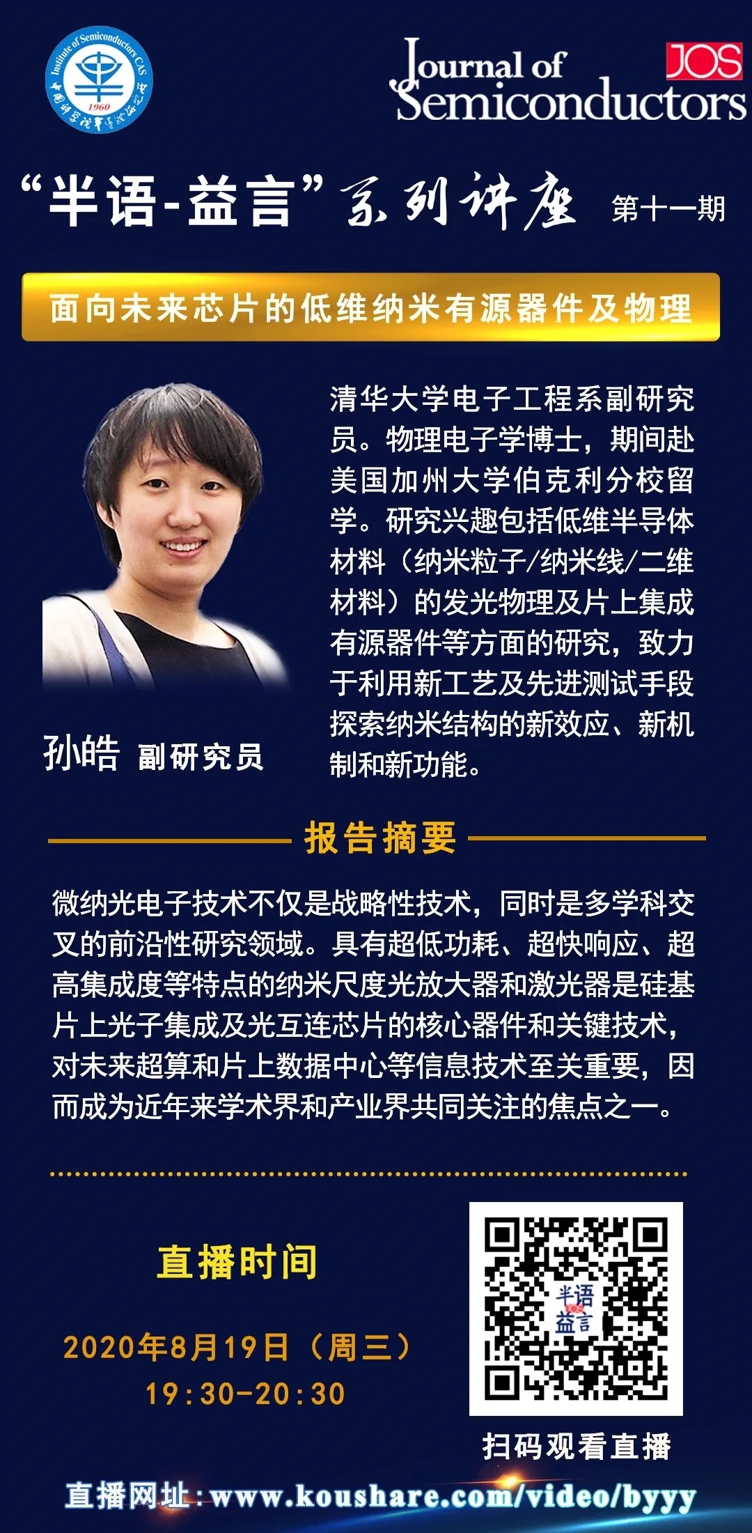 【直播预告】“半语-益言”系列讲座第十一期 | 清华大学孙皓:面向未来芯片的低维纳米有源器件及物理