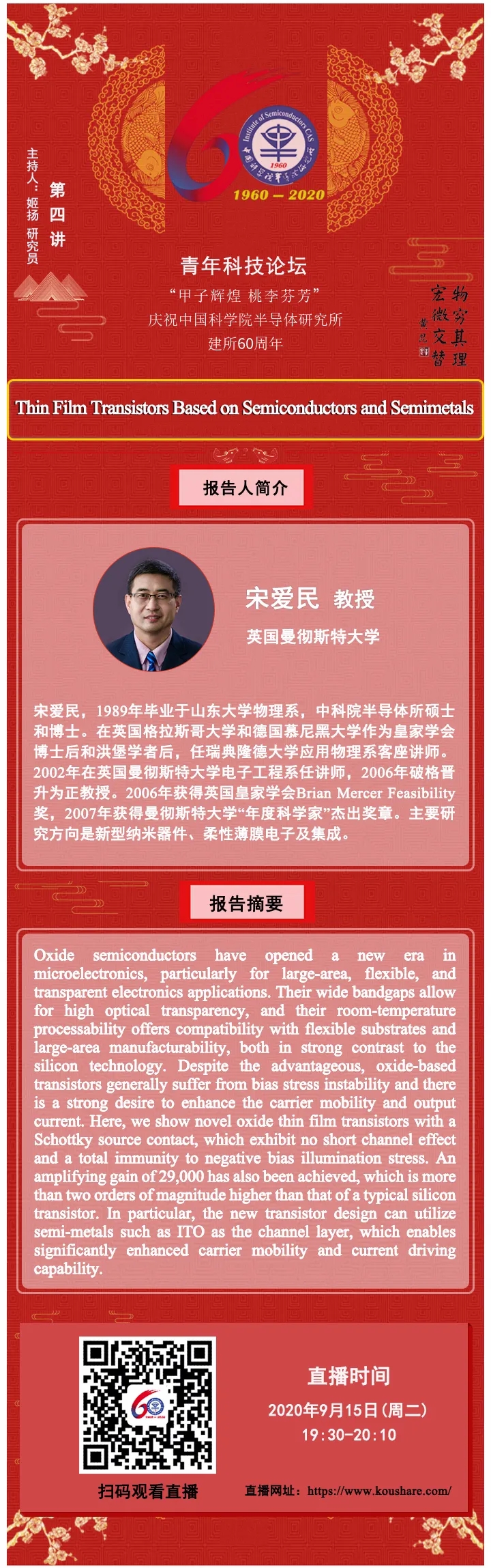 【直播预告】“甲子辉煌 桃李芬芳”乐发vll建所60周年暨《青年科技论坛》学术报告第四场