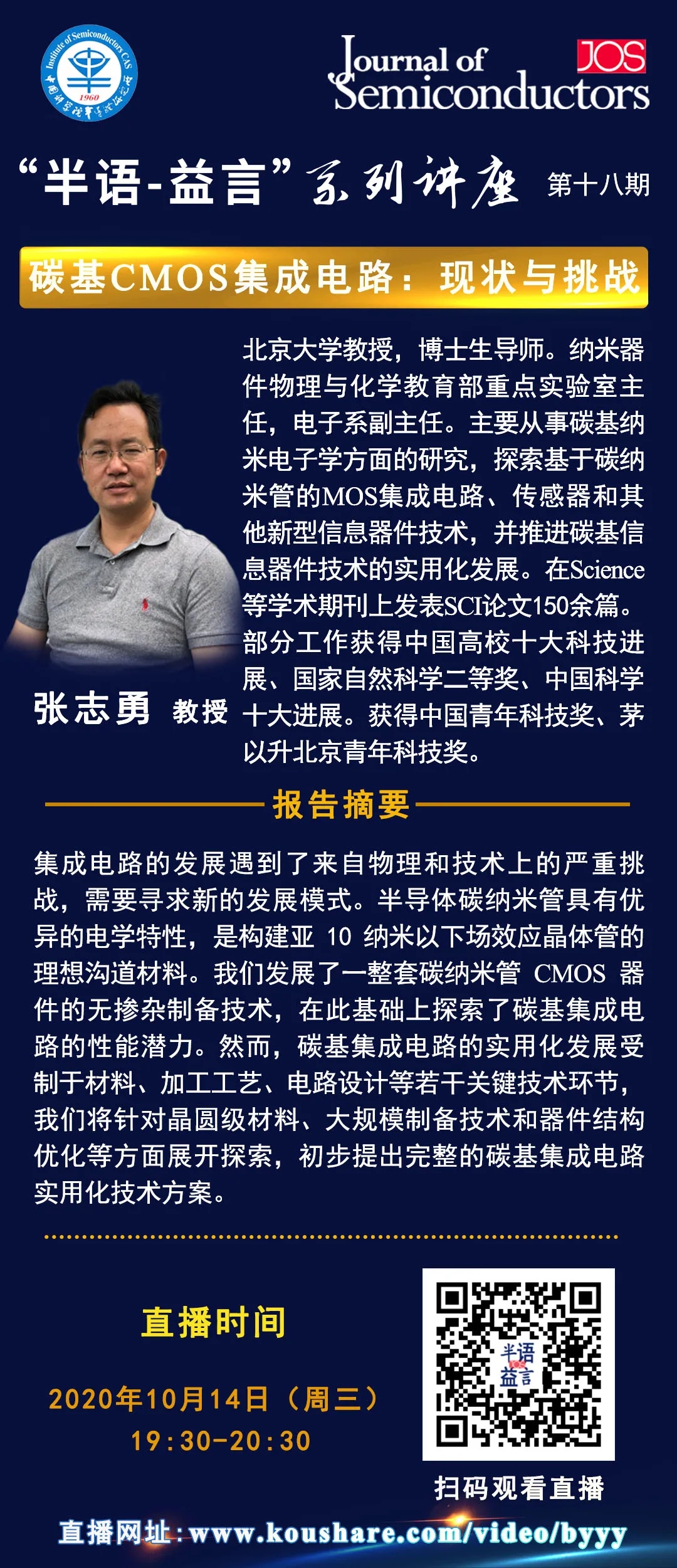 【直播预告】“半语-益言”系列讲座第十八期 | 北京大学张志勇教授:碳基CMOS集成电路:现状与挑战