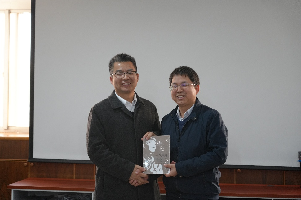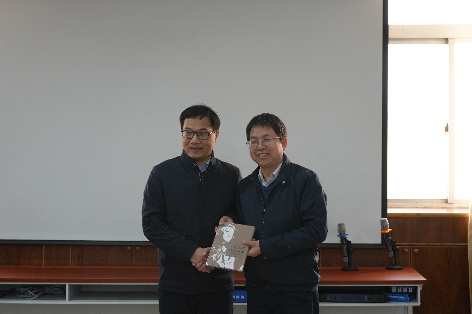 谭平恒向唐江赠送黄昆先生纪念书籍