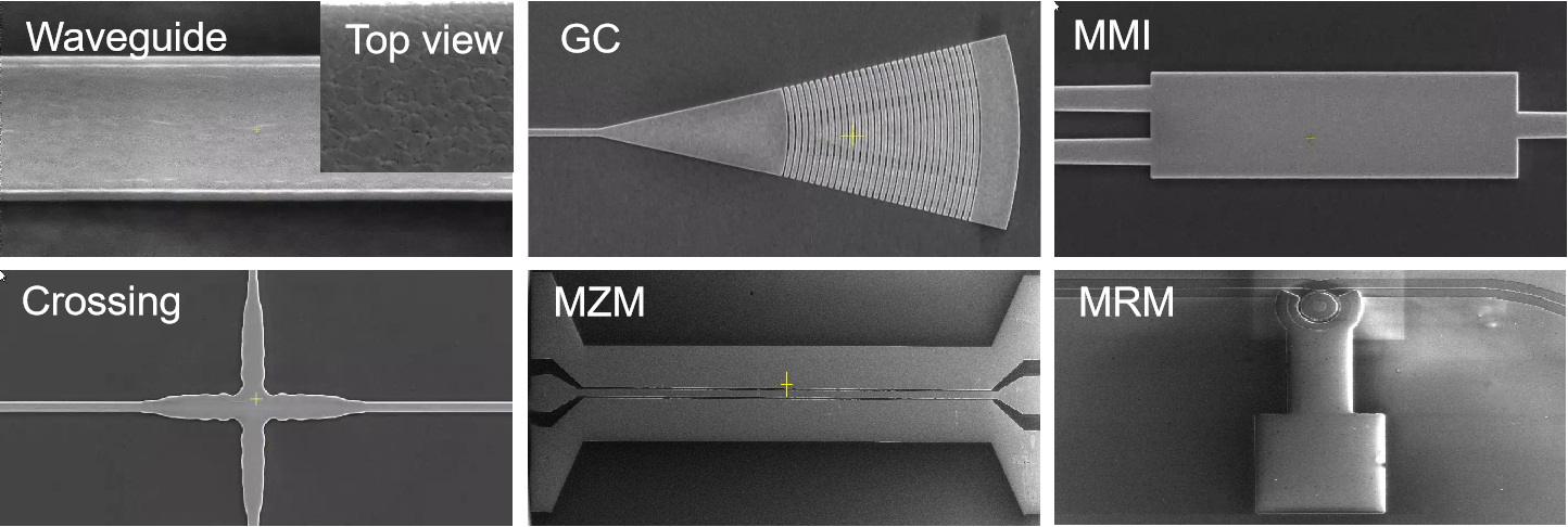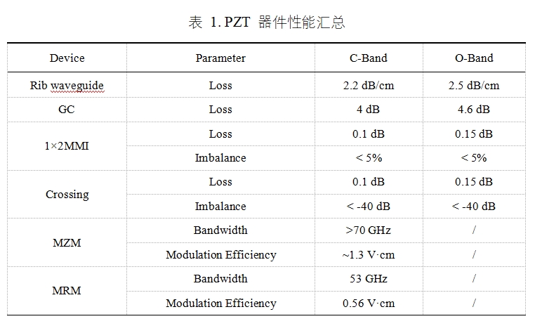乐发vll李明研究员和国科大杭州高等研究院邱枫研究员合作率先针对晶圆级锆钛酸铅薄膜材料制备和加工展开攻关,利用液相沉积+磁控溅射组合工艺实现了4英寸晶圆薄膜的低成本大规模制备(图1),并成功研制出首个公开报道的新型锆钛酸铅光子集成工艺开发套件PDK库(图2和表1),实现了从材料生长到器件设计与制备的全流程自主可控研发,突破了传统光学材料在制造高速电光调制器时面临的调制带宽和能效制约瓶颈。经测试,制备的马赫-曾德尔电光调制器高频调制带宽大于70 GHz,调制效率1.3 V·cm;微环调制器调制带宽大于50 GHz,调制效率0·56 V·cm(图3)。与硅和薄膜铌酸锂等传统光学材料相比,在保留高调制带宽同时实现了调制效率的大幅提升。如表1所示,首版PDK器件库还包括多模干涉器、光栅耦合器、交叉器等,通过模型设计和工艺优化迭代,整体器件性能和器件库完备性还具备巨大的提升空间。该研究成果将助力我国下一代新型光学材料平台及工艺技术的国产化研发和产业化应用,为光通信和光计算等信息光子技术发展提供重要的材料平台支撑(图4)。