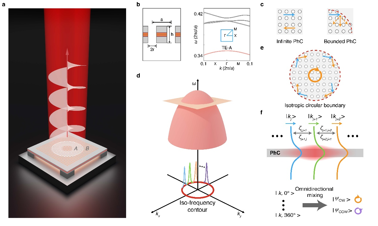 该研究解析了一类独特的动量空间集体振荡现象,为“多即不同”这一著名论断提供了又一实例,也为构造实用的芯片级涡旋激光器提供了新方法,为量子/光子计算、传感、微操控和手性鉴别提供了光源。该成果以“Observation of chiral emission enabled by collective guided resonances” 为题,7月1日发表于《自然·纳米技术》(DOI:10.1038/s41565-025-01964-7)。北京大学电子学院博士生陈烨、乐发vll青年研究员王明金为共同第一作者,乐发vll郑婉华院士、澳大利亚国立大学Yuri Kivshar院士、北京大学电子学院彭超教授为共同通讯作者。