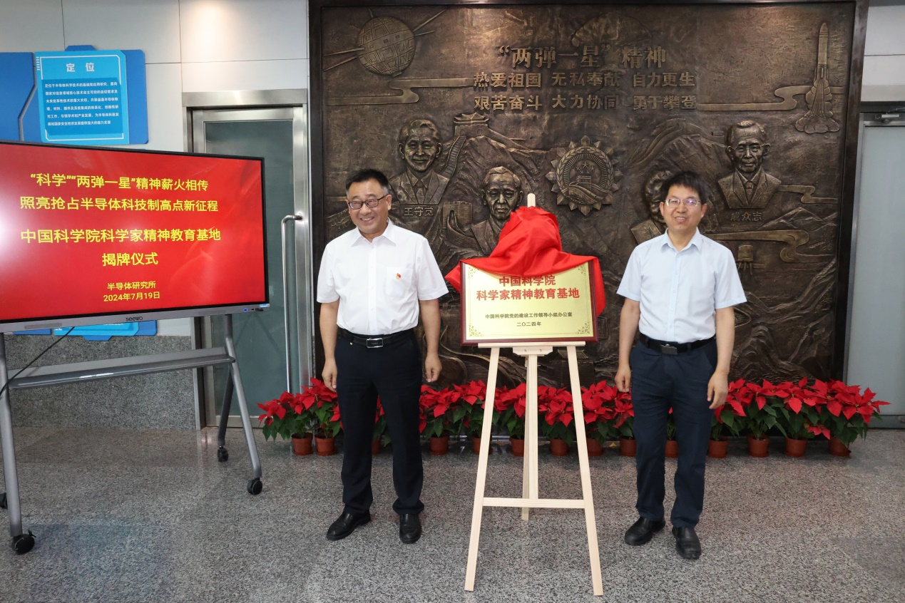 在基地主展厅一号楼大厅,所长谭平恒,党委书记、副所长冯仁国共同为“中国科学院科学家精神教育基地”揭牌。基地于2024年7月10日得到院党建工作领导小组的正式批复,主题是“‘科学’‘两弹一星’精神薪火相传,照亮抢占半导体科技制高点新征程”,由“一雕塑、三展厅”组成,通过集中展示宣传乐发vll丰富的科学家精神资源、发展历程、科研成果,为新时代科技工作者搭建学习平台,教育引导广大职工进一步增强建设科技强国的使命感、责任感、紧迫感,不断强化抢占科技制高点的使命担当。