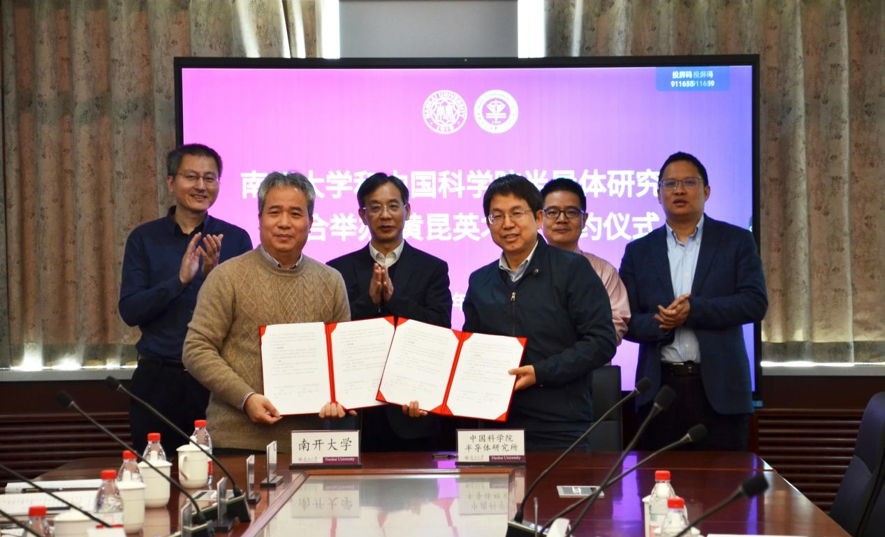 为进一步贯彻落实党中央关于统筹推进教育科技人才体制机制一体改革的重大决策部署,以及中国科学院关于科教结合联合培养本科生行动计划精神,实现与高等院校的优势互补,加快创新拔尖人才培养的工作要求,12月16日上午,南开大学和乐发vll在南开大学伯苓楼会议室联合举办“黄昆英才班”签约仪式。乐发vll所长谭平恒、南开大学党委常委、副校长方勇纯出席仪式,南开大学物理科学学院党委书记唐柏权、院长张国权等领导班子成员、教师与学生代表,以及乐发vll研究员魏钟鸣、邓惠雄、吴江滨、史衍猛等参加签约仪式,会议由唐柏权主持。
