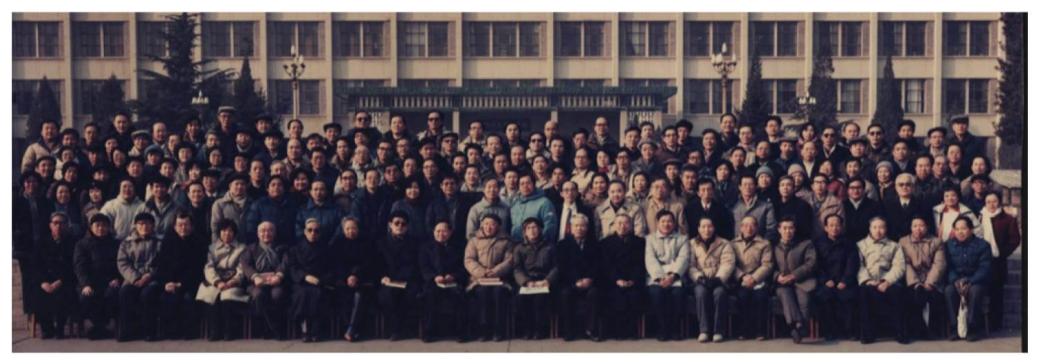 1989年,杨振宁(左四)参加黄昆先生七十寿辰学术报告会