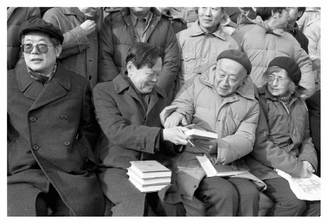 1989年,杨振宁(左二)参加黄昆先生七十寿辰学术报告会